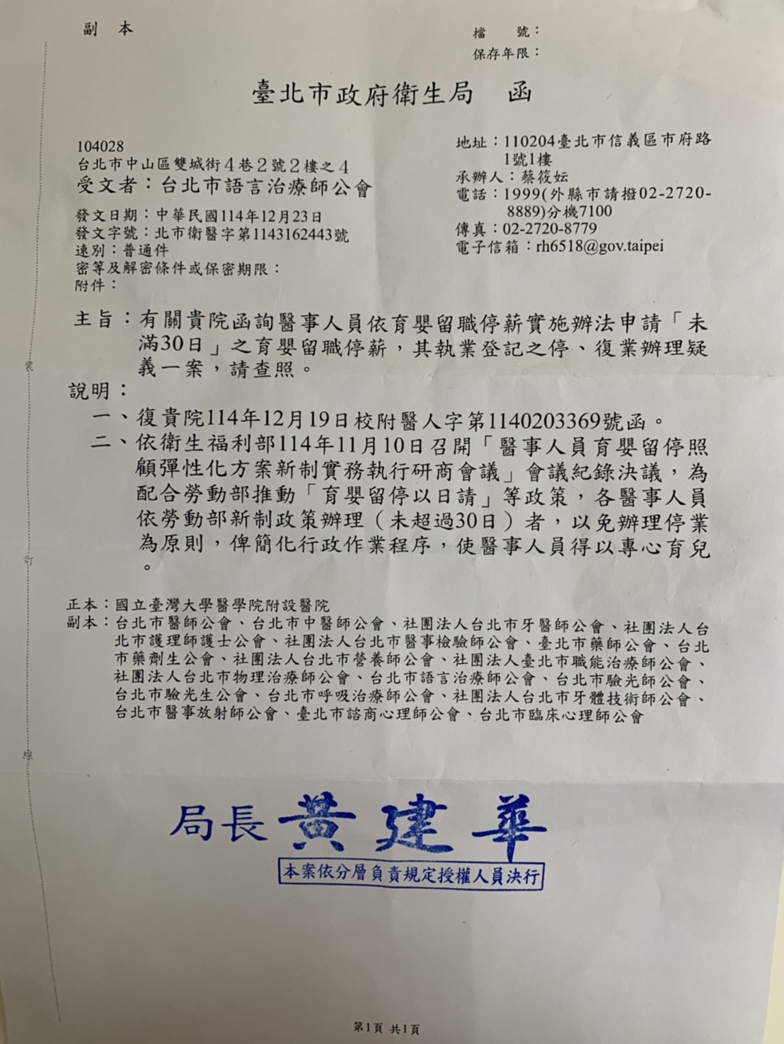 【公文公告】醫事人員育嬰留職停薪辦法